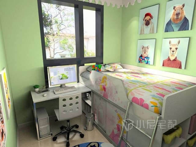 卡通是兒童房必不可少的元素,中性的設計,讓整個空間不再單一
