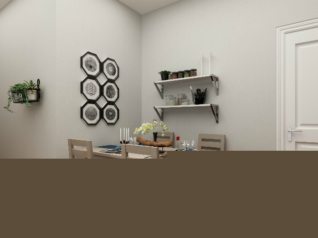 餐廳空間較小,僅用壁架和裝飾畫豐富小空間。