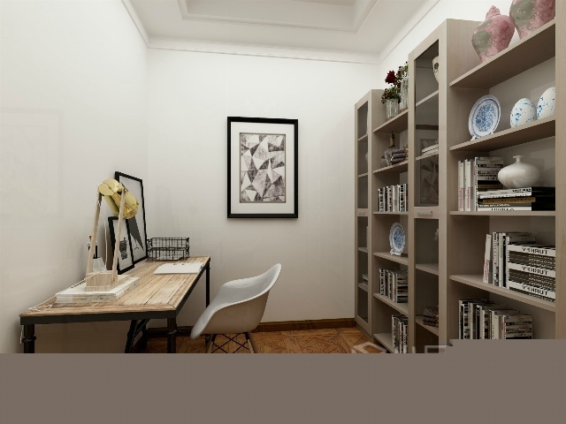 書房的空間較小,利用大書架,工業(yè)風(fēng)的書桌,造型簡約大氣。