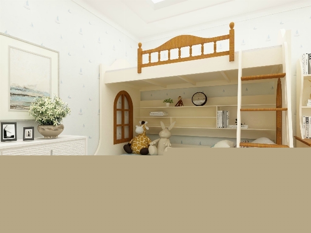 造型可愛的上下床,淡雅的裝飾環境,給孩子自由自在充滿幻想的小空間。