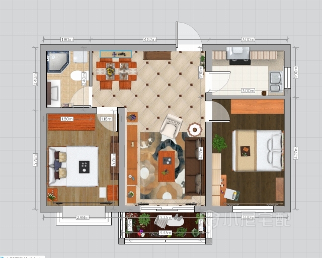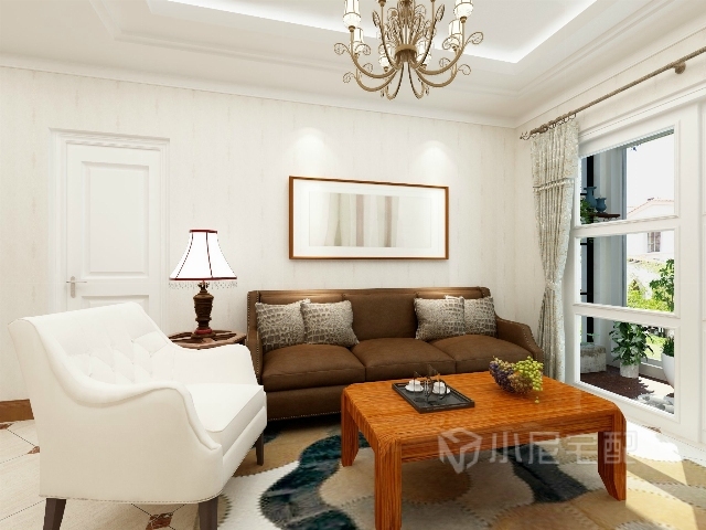 棕色布藝沙發搭配白色皮質沙發,休閑與高貴并存。