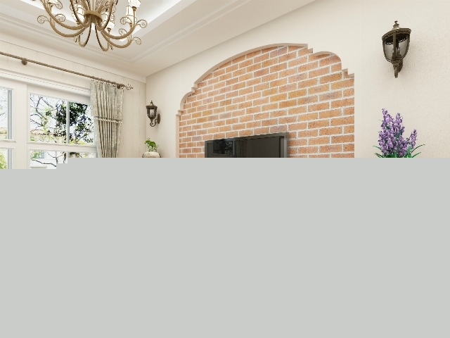 拱形造型背景墻,簡約的電視柜組合,有一點田園風帶來的自然的氣息。