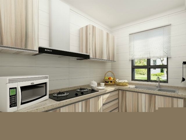 造型簡潔的L型櫥柜組合,不浪費一平米,合理利用空間,顯得十分整潔干練。