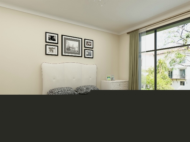 簡約的背景墻,點綴的裝飾畫,沒有復雜的裝飾,簡潔即是豐富。