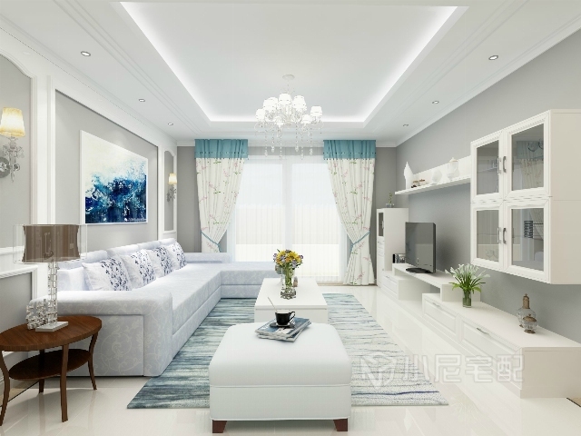 灰色的墻面,淡藍色的裝飾點綴,文藝清新,自然低調。