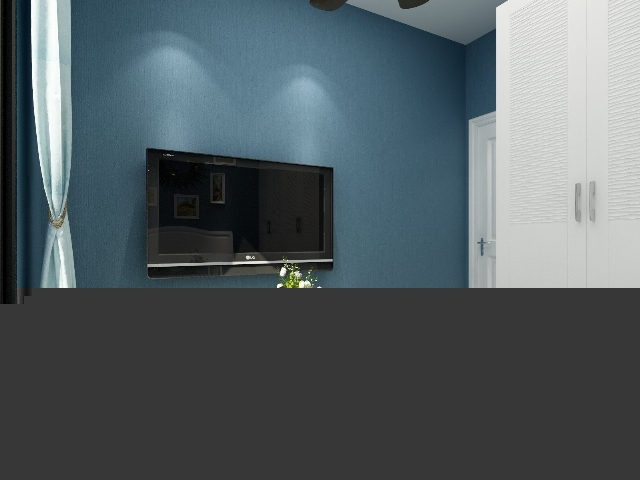 電視背景也沒多做修飾,放置幾個擱板增加儲物功能即可
