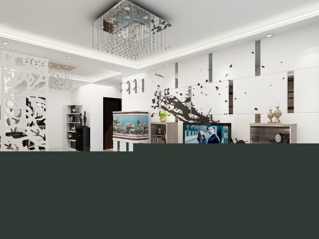 客廳采用了黑色鏡面材質,凸顯了整個空間的現代感