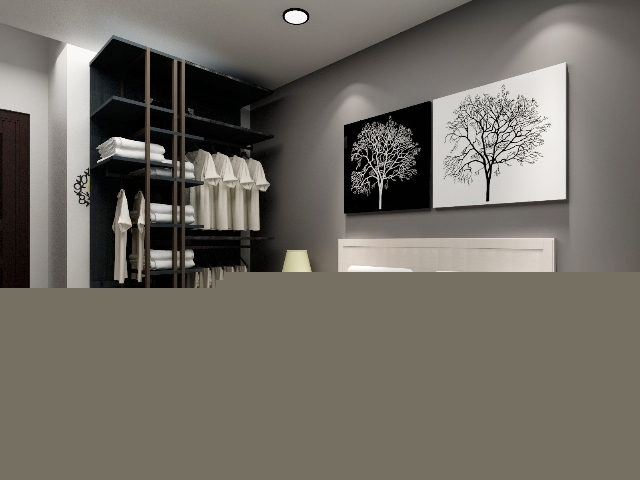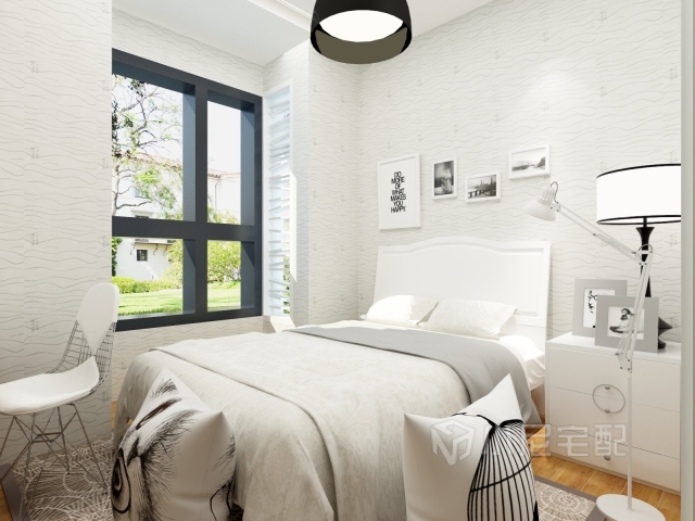 主臥大面的黑白灰對比,整個空間顯得高大上