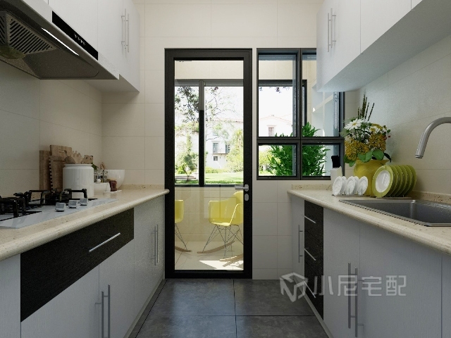 廚房采用白色為主色,黑色為套色的櫥柜,顯得不那么突兀