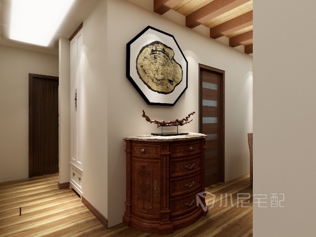 走廊處設(shè)一玄關(guān),很有藝術(shù)氛圍