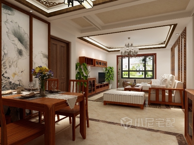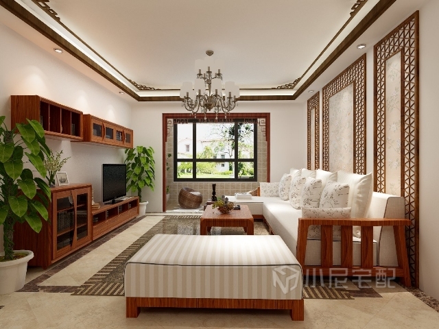 簡單的中式元素,與沙發布藝的結合,摒棄生硬死板,更顯親切自然
