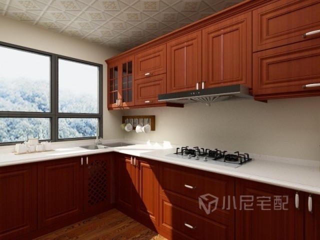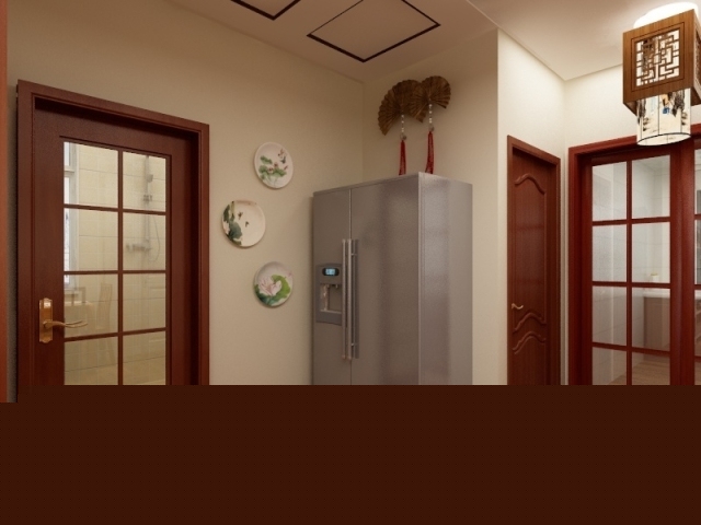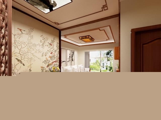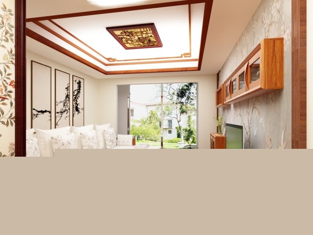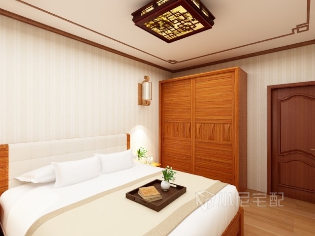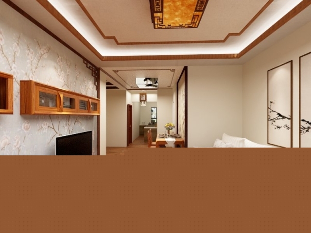 中式風格,墻面采用米色防麻墻紙,整體感覺溫馨醇厚。