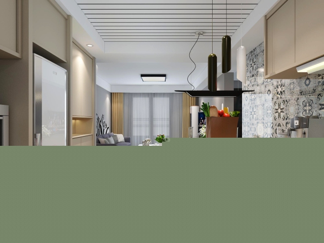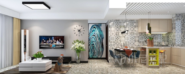 由于原始戶型廚房較小,所以經過墻體拆改,將餐廳廚房,門廳搭配到一起,整體顏色搭配采用小尼地平線系列,與花磚形成強烈對比,使整個空間更溫馨,更出彩