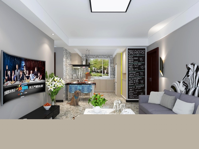本方案為90后小兩口而生,由曲線和非對稱線條構成,如花梗、花蕾、以及自然界各種優美、波狀的形體圖案等,體現在背景墻,地磚,壁紙等裝飾上。線條有的柔美雅致,有的遒勁而富于節奏感。整個空間形式都與有條不紊的、有節奏的曲線融為一體。