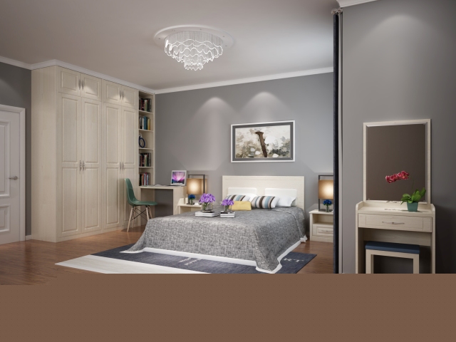 柔軟舒適的大床,多功能的衣柜,簡易的書桌,梳妝臺,一應俱全