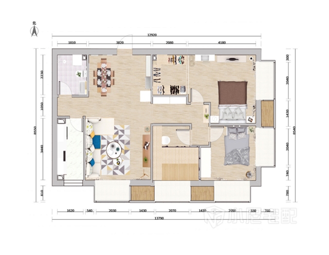 方案整體風(fēng)格趨向于簡(jiǎn)約風(fēng)格,戶型采光較好,大面積灰色并不會(huì)另空間壓抑,配合白色踢腳線、木地板和原木色家具,使整個(gè)空間能更好的展現(xiàn);原是三室一廳兩衛(wèi)的戶型,為滿足業(yè)主對(duì)于衣帽間的需要,將主臥內(nèi)的衛(wèi)生間改造成衣帽間;原戶型內(nèi)過道很寬,占用了很大的空間,后將隔墻拆改,占用一部分衣帽間的空間,使過道一側(cè)留出內(nèi)嵌展示柜的深度,弱化3米多長(zhǎng)的過道。