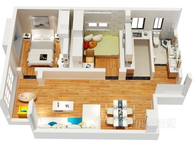 白色柜體帶來自然般的舒適,木色地板點(diǎn)綴時(shí)尚簡約。