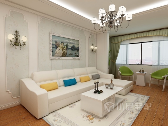 沙發(fā)色彩搭配清新淡雅,給人一種放松舒適的感覺。