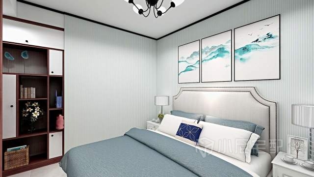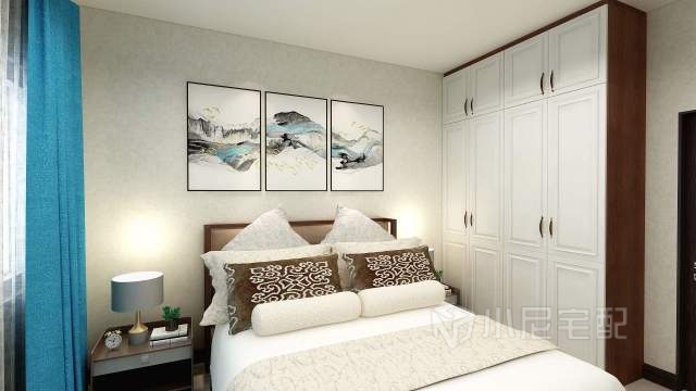 主臥衣柜選用了深淺色搭配的方案做衣柜 。既不壓抑,又不破壞整體的風格。