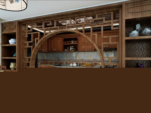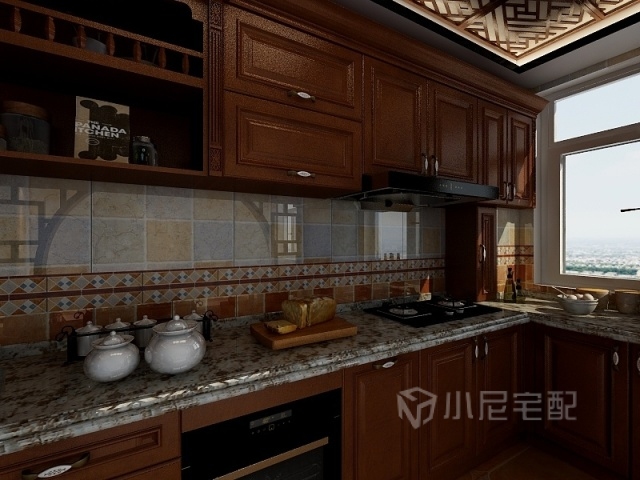 廚房比較大容納更多的電器,中式吊頂提供更高的生活品味。