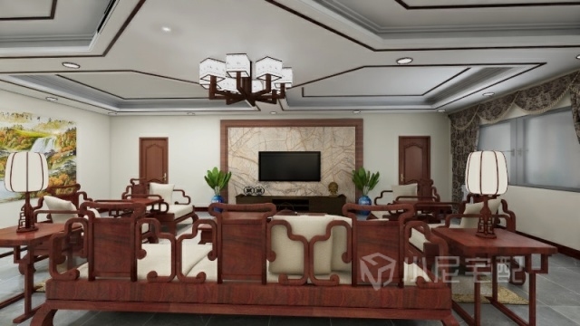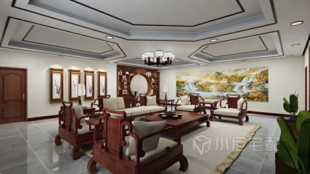 客廳運用的是紅木材質家具 低調沉穩 更能凸顯業主的身份以及品味