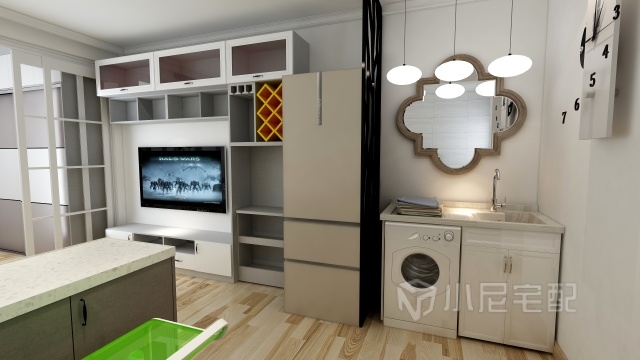 陽臺充分體現空間感,折疊梳妝臺和抽拉小凳。空間百變利用