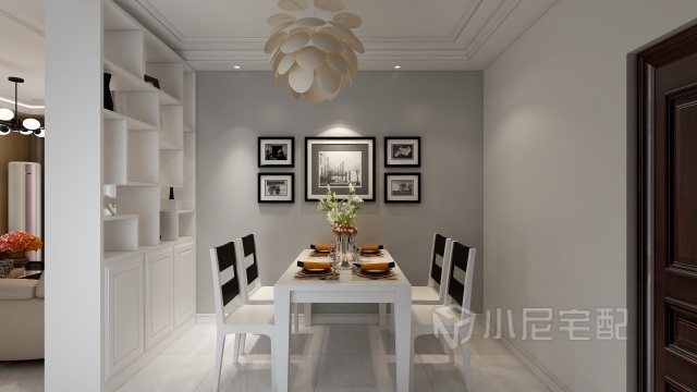 簡單的裝飾畫配上黑白色的桌椅,整體簡單卻又不失單調