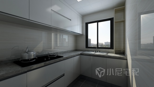 廚房整體黑白灰色調,更大的遵循了女主人的喜好,畢竟是她的天下