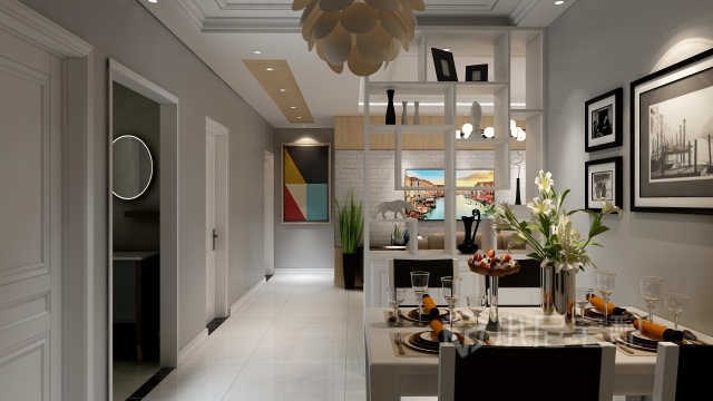 玄關采用了隔斷來劃分空間,既能合理充分利用空間,又能更好的區別客餐廳、并且不影響采光