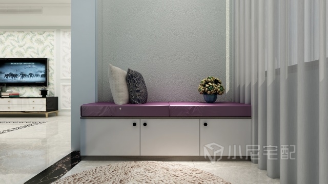 陽(yáng)臺(tái)設(shè)置簡(jiǎn)單的卡座,可以休閑娛樂(lè)也可以儲(chǔ)物。