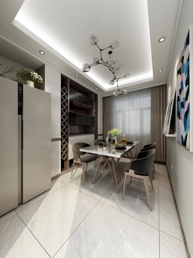 時尚簡潔,空間以實用為主,美觀為輔,開闊明朗,體現(xiàn)高品質(zhì)的家居環(huán)境即可。 案例說明:簡約不等于簡單,它是設(shè)計師深思熟慮后經(jīng)過創(chuàng)新得出的設(shè)計和思路的延展,不是簡單的“堆砌”和平淡的“擺放”,在本案設(shè)計中設(shè)計師把原有的廚房和客廳相融合使客廳整體空間變得更大使用起來更舒適。在家具配置上,白亮光系列家具,獨特的光澤使家具倍感時尚,具有舒適與美觀并存的享受。在配飾上,延續(xù)了黑白灰的主色調(diào),以簡潔的造型、完美的細(xì)節(jié),營造出時尚前衛(wèi)的感覺。