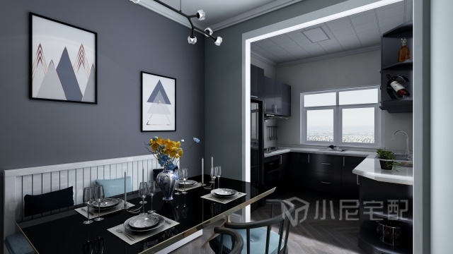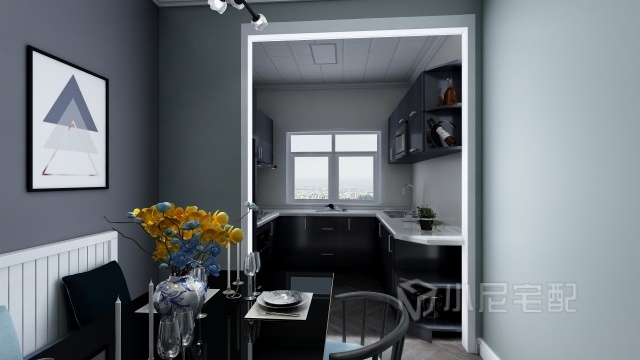 本案的餐廳設(shè)計(jì)亮點(diǎn)便是噴花茶鏡,以及吊頂。與客廳的設(shè)計(jì)合二為一,相互呼應(yīng)。還運(yùn)用兩幅現(xiàn)代掛畫,更符合現(xiàn)代人的審美品位。餐廳中設(shè)置了吧臺(tái),可以點(diǎn)綴餐廳的空間,同時(shí)也提高了主人的品味。