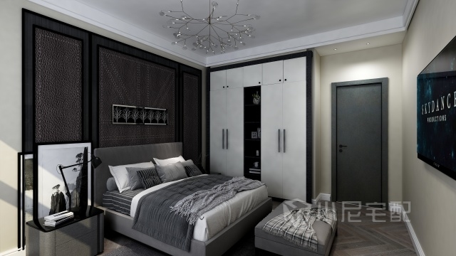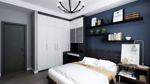 頂面采用規(guī)則的石膏板吊燈和筒燈,床頭背景都運(yùn)用了壁紙等材料。從而營(yíng)造一個(gè)現(xiàn)代化的簡(jiǎn)單,舒適主臥空間。客臥的設(shè)計(jì),主要以乳膠漆,壁紙,石膏線條為只要裝飾材料。