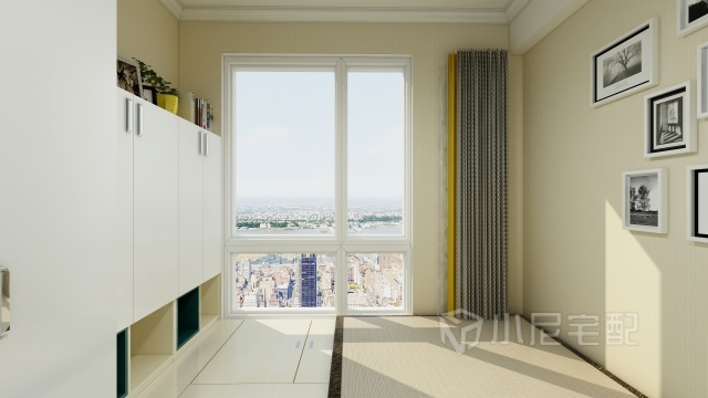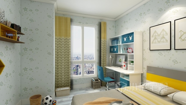 淺藍(lán)色壁紙清新自然配合檸檬黃給孩子一個(gè)舒適多彩的居住學(xué)習(xí)空間