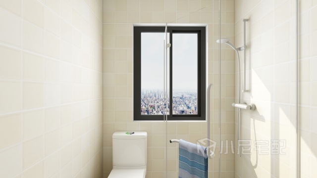 主衛(wèi)生間原木色手盆及米色墻磚與主題北歐風(fēng)格相協(xié)調(diào)