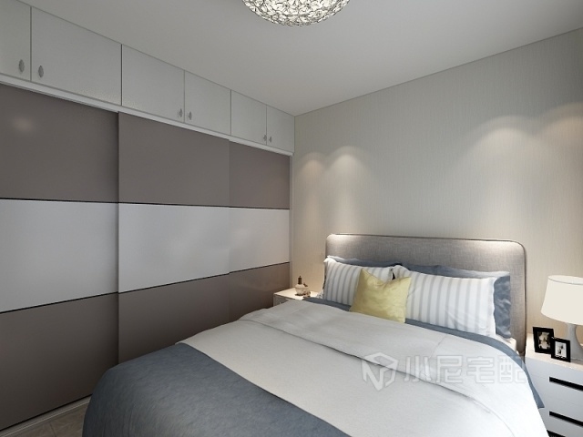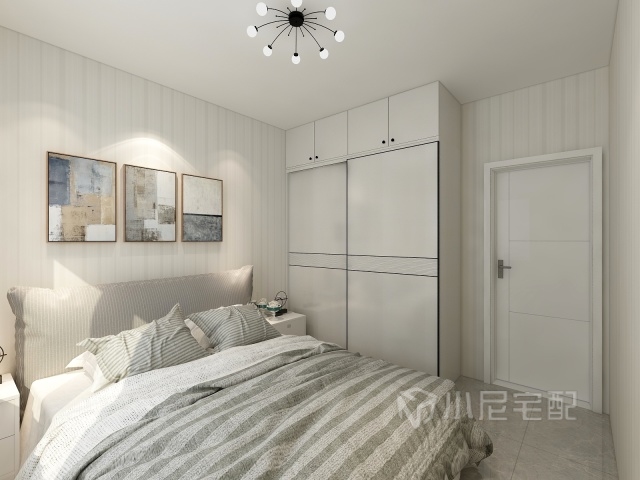 次臥空間簡單溫馨,窄框推拉門時尚感更強