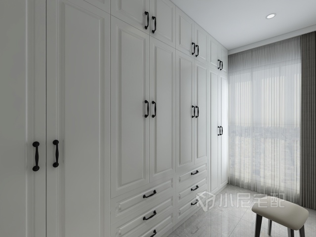 入戶左手邊的衣帽間,應客戶要求做成平開門