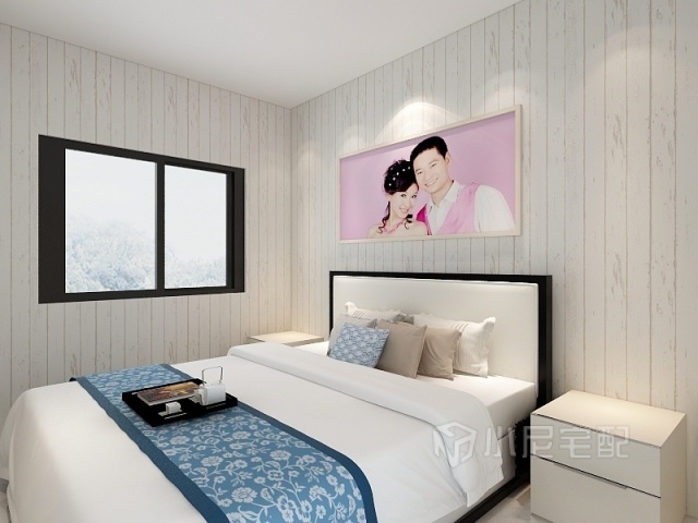 寬敞明亮的戶型設計一款簡約時尚的軟床。使空間溫馨甜蜜。