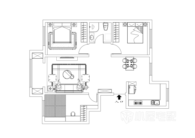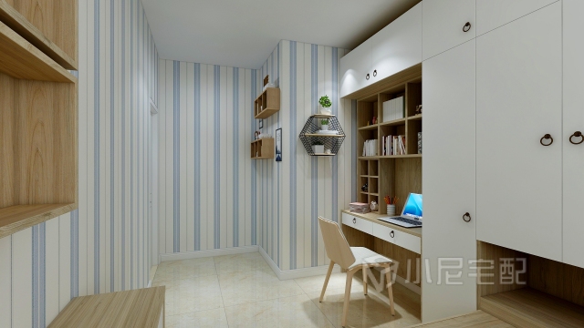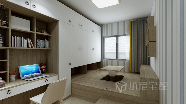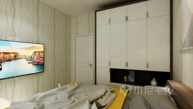 整體以白色和原木色為主,體現安逸、靜謐的空間