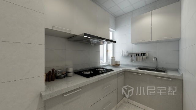 廚房的設計選材和色彩搭配上,注重實用美觀與顏值并存法。柜門造型顏色及灰色臺面的搭配出經典,精致細節體現到每個五金配件,用心生活也要懂得享受方寸間。