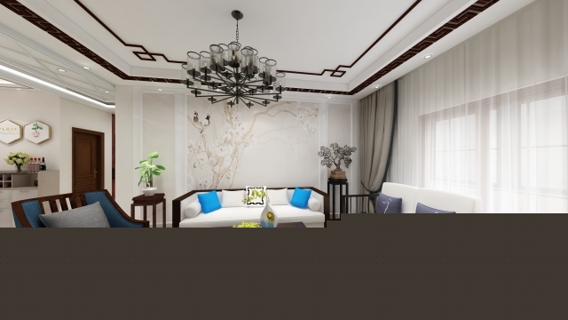 客廳采用的是新中式 沙發采用的是實木休閑沙發 松軟舒適 并沒有選用純實木的紅木沙發 紅木沙發分量重不易打掃 而且很容易磕碰到身體