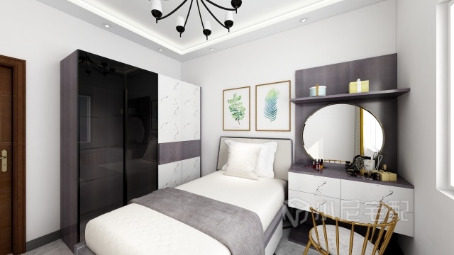 次臥 青年房衣柜功能區特別分明 也同樣配備了玻璃門扇 簡潔時尚 配備的梳妝臺就很容易看出是一個美少女的房間啦呵呵