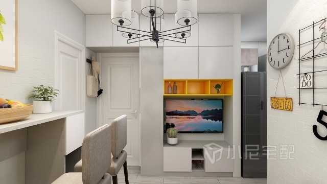 本方案客戶家實際戶型狹長,且還要滿足90后新婚夫妻倆的基本生活需求,所以整體風格偏簡約,而且每一處空間都不允許浪費,故此,整體的設計更多的考慮到多功能性,達到客戶理想中的溫馨小窩。