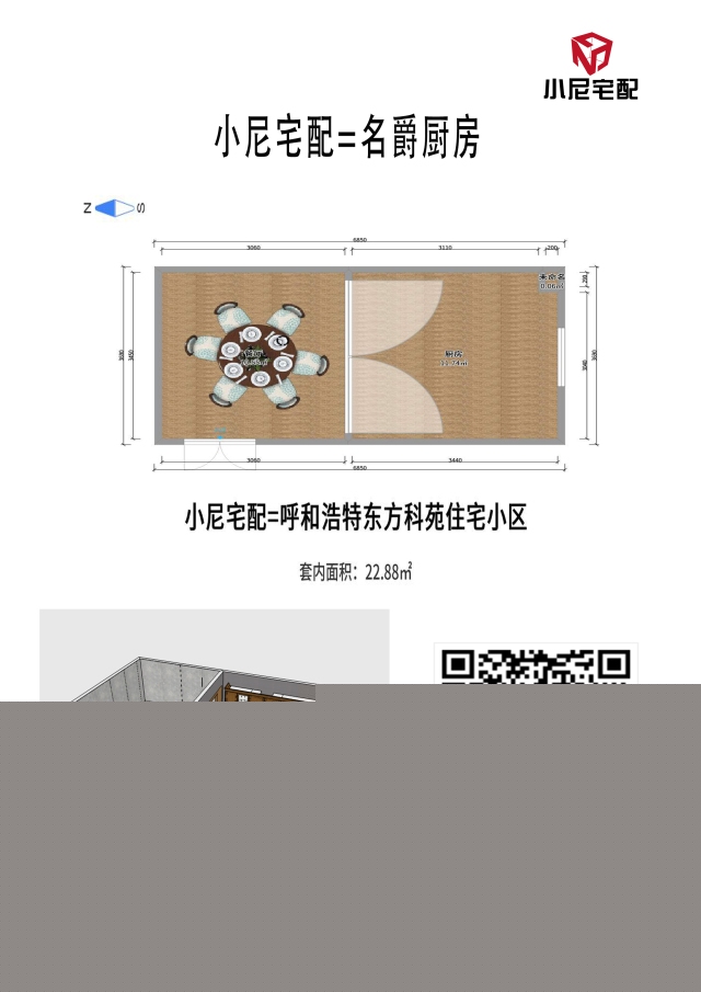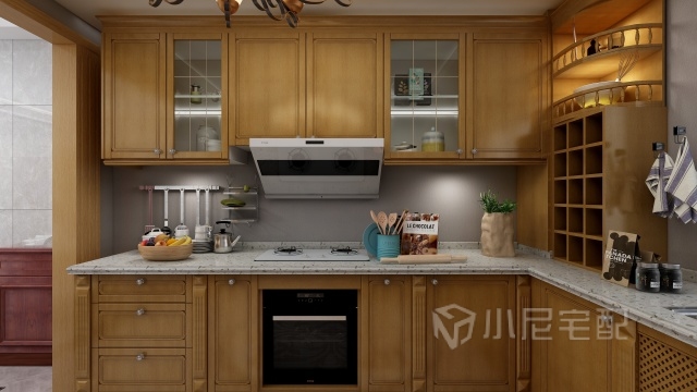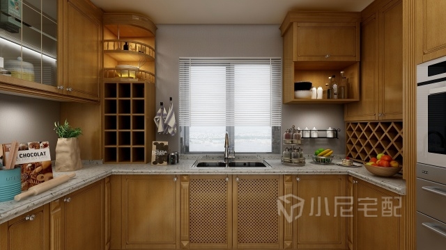 U型廚房布置,活動空間充足,三角動線明確