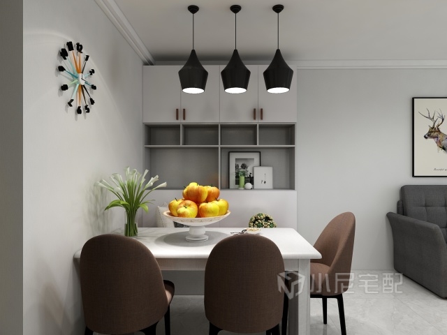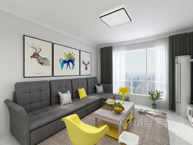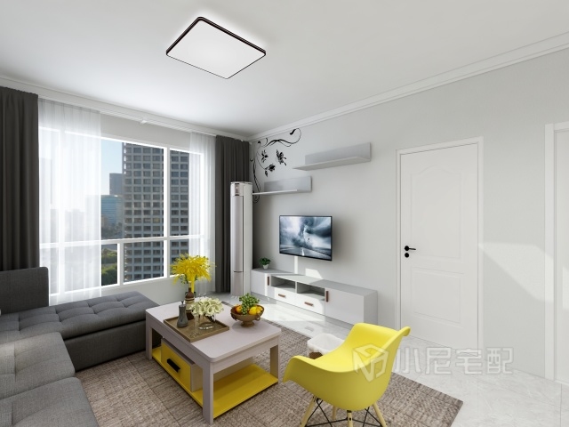 客廳家具的色調(diào)選用,灰布紋套白亮光吸塑,干凈利索。搭配檸檬黃點(diǎn)綴,顯得家更溫馨。