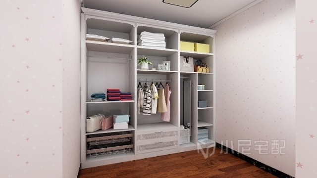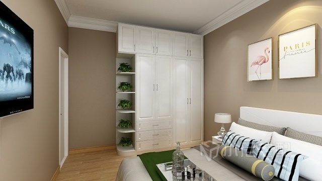 小平米的次臥配上封頂的敞開衣柜真的小空間大大利用,整體顏色搭配也檔次格調3提升了