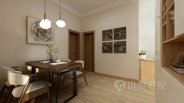 餐廳以暖色作為背景色,簡潔的掛畫作為空間的點綴色,相互融合且相互襯托。空間貫穿的不用刻意修飾,自然舒適是關鍵。
