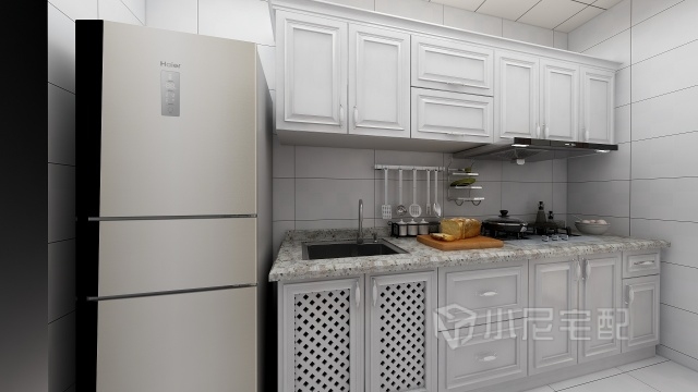 廚房一字型櫥柜 面積雖小但是合理利用空間 儲物 做飯 各不耽誤同時也擺脫了冰箱沒地方放的難題