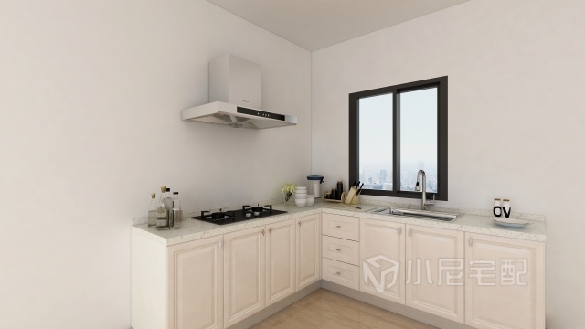 廚房也用的現代風格的 白色