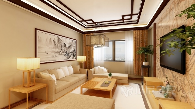 現代的客廳中結合了中式的裝飾在其中,迎合了新老不同階段人們的審美傾向。